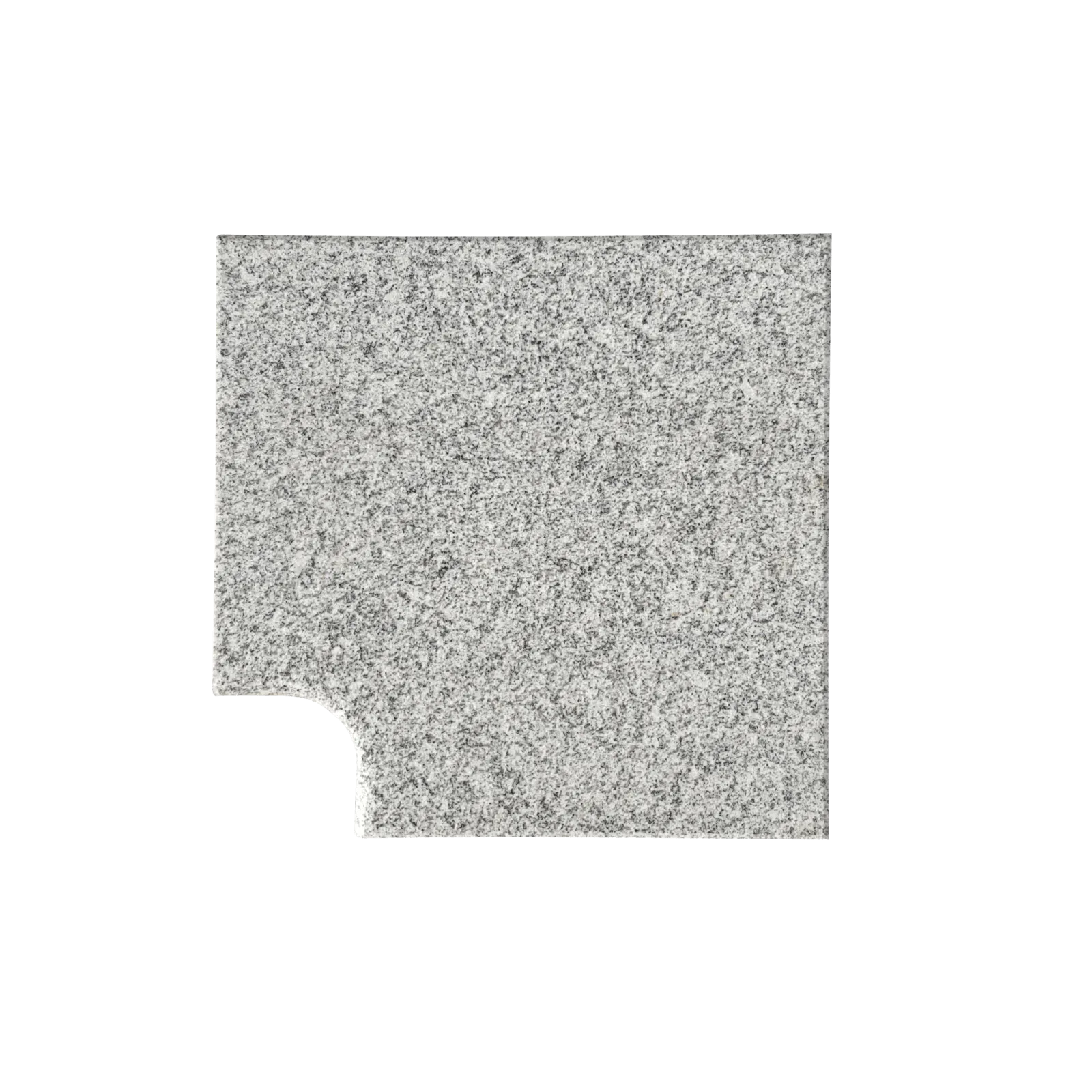Természetes hatású gránit medence szegélykő, belső oldalán (medence felé eső oldalán) lekerekítve. Lángolt felülete van, amely nedves álapotban is csúszásmentes felülettet biztosít. A műkövekkel ellentétben a kialakítása egységes, nem görbe, nem hullámos.