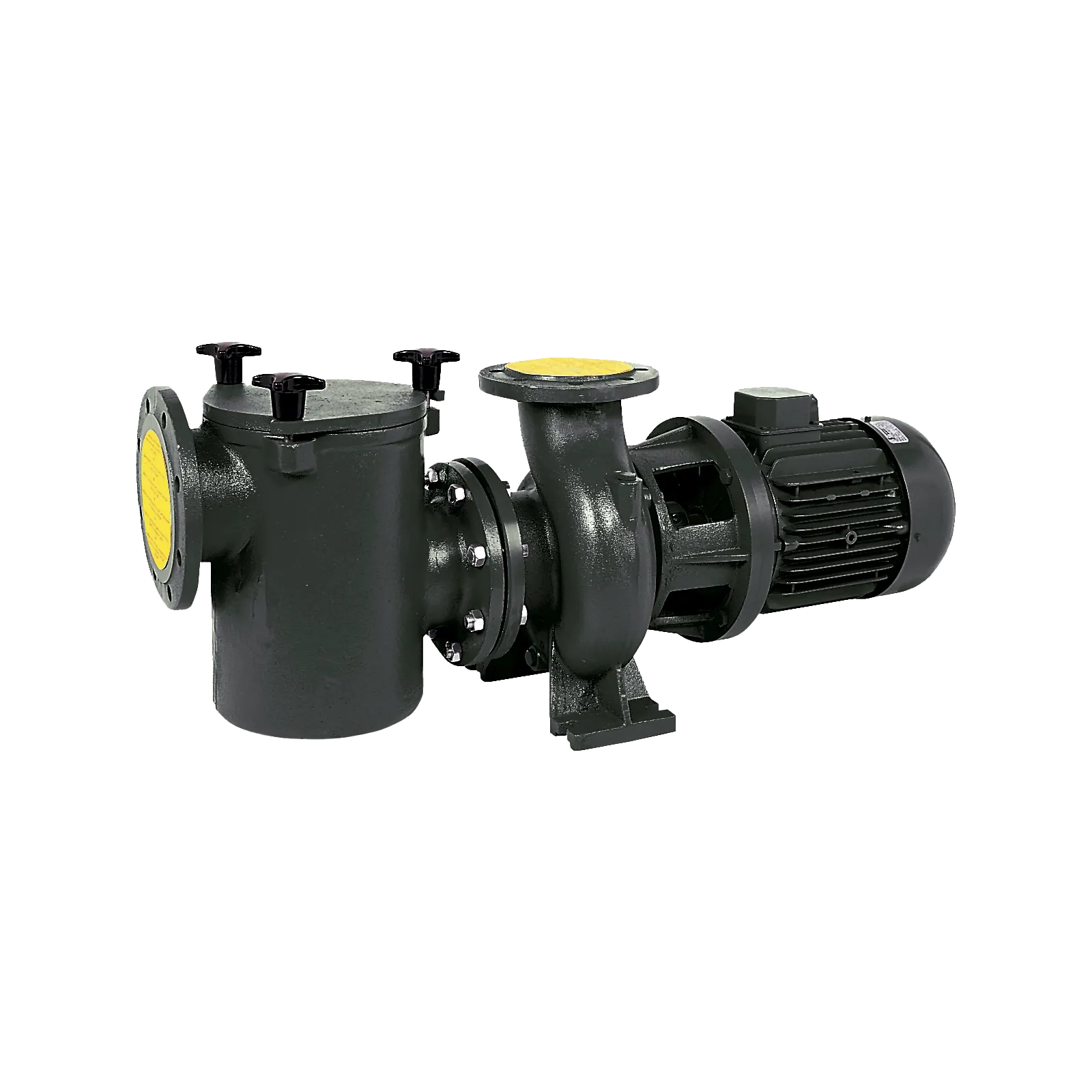 Nagy teljesítményű szivattyú közületi használatra. Egy nagy teljesítményű centrifugál szivattyú, amelynek bemenetéhez egy előszűrőt csatlakoztattak, így ezek ideális szivattyúk nagy úszómedencék szűrőegységeihez.