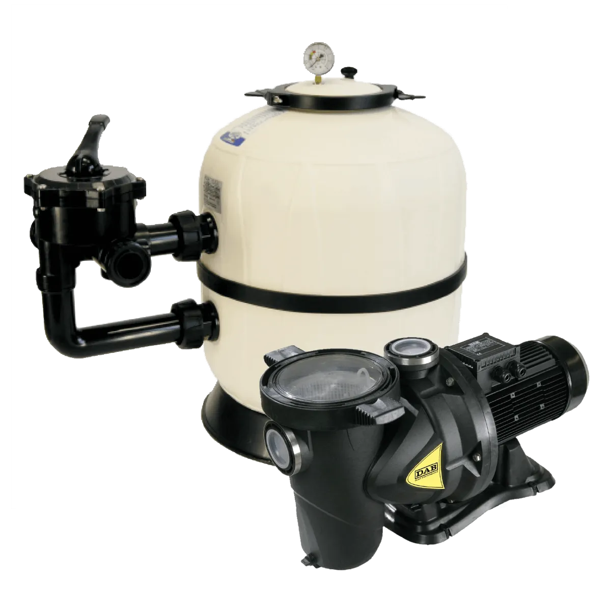 DAB Euroswim minőségi önfelszívó szivattyú Aquarius Side típusú szűrőtartállyal, kis- és közepes méretű medencékhez. A szűrők polipropilénből vannak öntve a hosszú élettartam érdekében.